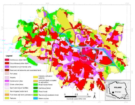 - Wroclaw Spatial Information System. Available online: https://geoportal.wroclaw.pl/en/resources/ (accessed on 15 December 2020).