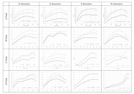 - Yang, P.; Xiao, Z.-N.; Ye, M.-S. Cooling effect of urban parks and their relationship with urban heat islands. Atmos. Ocean. Sci. Lett. 2016, 9, 298–305. [Google Scholar] [CrossRef] [Green Version]