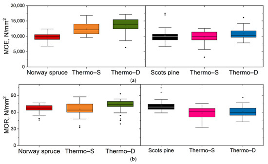 - Lekounougou, S.; Kocaefe, D. Effect of thermal modification temperature on the mechanical properties, dimensional stability, and biological durability of black spruce (Picea mariana). Wood Mater. Sci. Eng. 2014, 9, 59–66. [Google Scholar] [CrossRef]