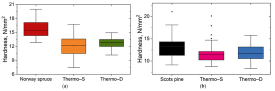 - Won, K.-R.; Kim, T.-H.; Hwang, K.-K.; Chong, S.-H.; Hong, N.-E.; Byeon, H.-S. Effect of heat treatment on the bending strength and hardness of wood. J. Korean Wood Sci. Technol. 2012, 40, 303–310. [Google Scholar] [CrossRef][Green Version]
