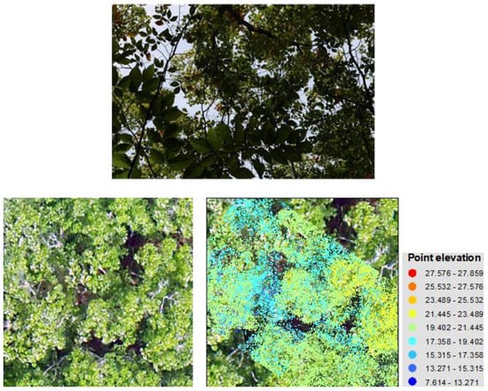 - Chianucci, F.; Disperati, L.; Guzzi, D.; Bianchini, D.; Nardino, V.; Lastri, C.; Rindinella, A.; Corona, P. Estimation of canopy attributes in beech forests using true colour digital images from a small fixed-wing UAV. Int. J. Appl. Earth Obs. Geoinf. 2016, 47, 60–68. [Google Scholar] [CrossRef] [Green Version]