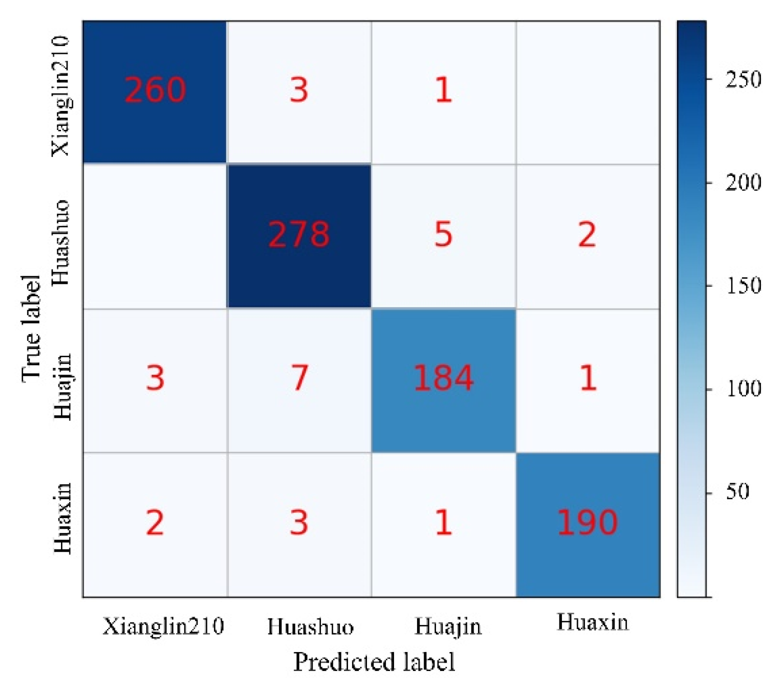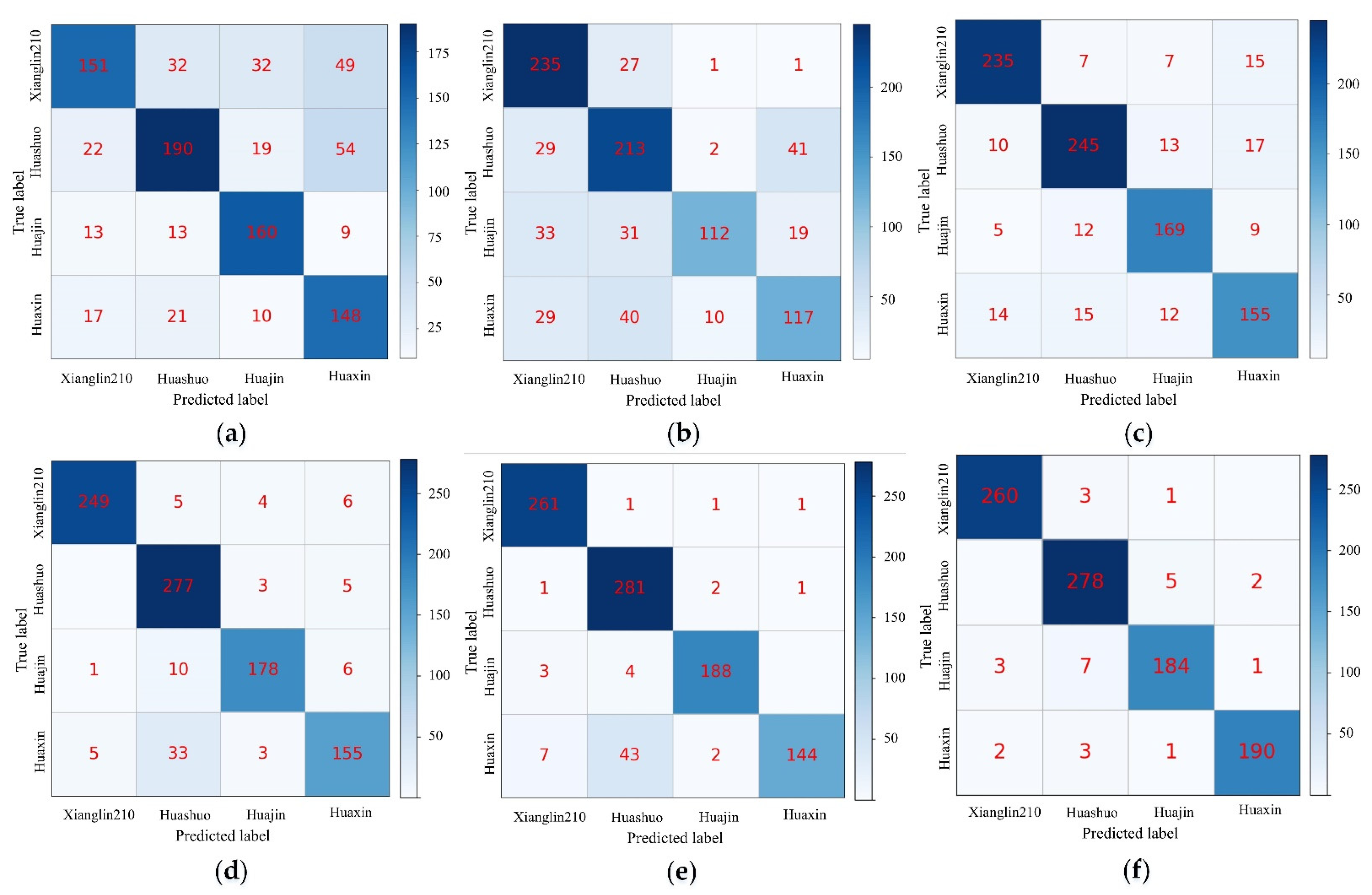 3.2. Comparison of Cultivar Identification Results with Different Models