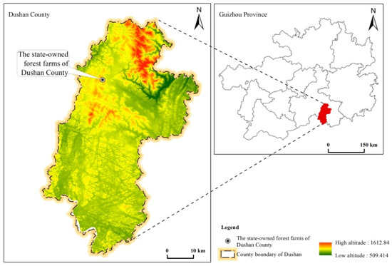 Location of the state-owned forest farms in Dushan County, Guizhou Province.