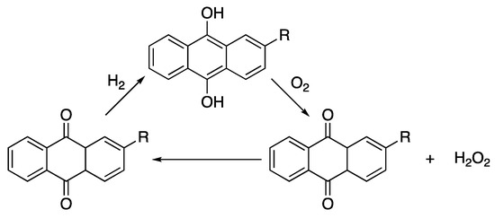 - Chen, Q. Development of an anthraquinone process for the production of hydrogen peroxide in a trickle bed reactor—From bench scale to industrial scale. Chem. Eng. Process. Process Intensif. 2008, 47, 787–792. [Google Scholar] [CrossRef]