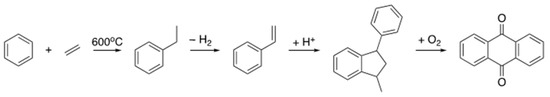 - Vogel, A. Anthraquinone. In Ullmann’s Encyclopedia of Industrial Chemistry; Wiley-VCH Verlag GmbH & Co. KGaA: Weinheim, Germany, 2000. [Google Scholar] [CrossRef]