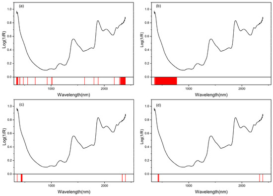 The distributions of the selected wavelength variables for each method. (a) SPA; (b) UVE; (c) CARS; (d) IRIV.