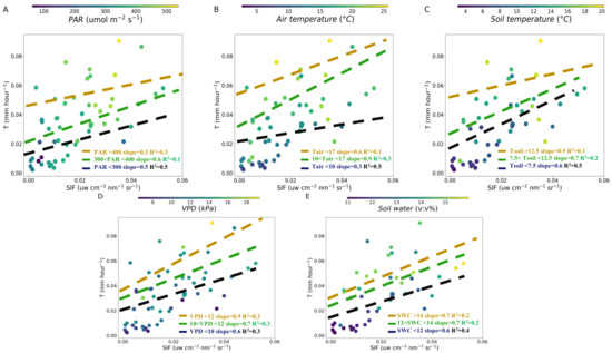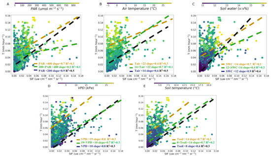 3.3. Influences of Meteorological and Soil Factors on the T-SIF Relationship
