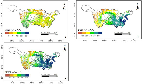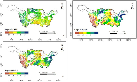 3.2. The Trends in Forest ANPP, PNPP and HNPP in the YRB