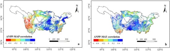 3.5. The Relationship between Forest ANPP and Climate Factors in the Whole YRB