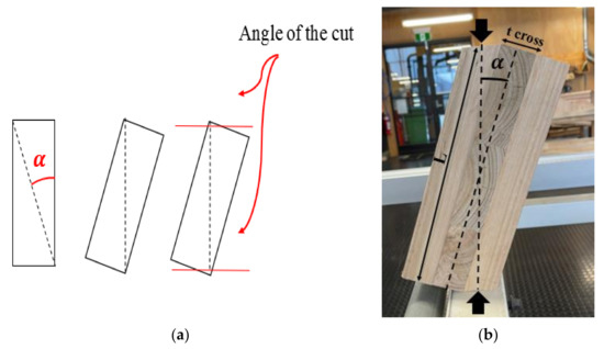 where Pmax is the maximum load (kN), L is the specimen length, w is the specimen width, tcross is the cross-layer thickness, is the inclination angle and is calculated from the load-defection curve between 0.1 and 0.4 P points.