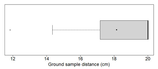 Due to different sensor resolutions and flight heights, the ground sample distance (GSD) of the different images ranged between 11.84 cm and 20.02 cm, with a mean value of 18.16 cm (Figure 3).