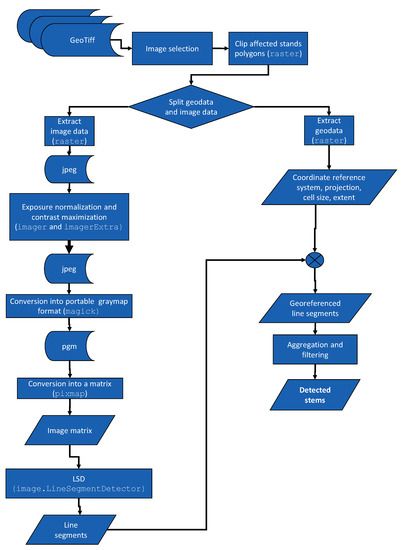 The workflow of the automatic stem detection (Figure 5) was completely implemented in the R statistical language and environment [39].