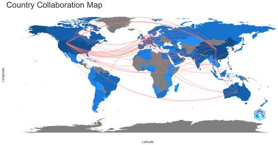 Figure 8 presents the global geographic mapping of publications and collaborations. The color shade of the country reflects the number of publications in that country, where the darker the color, the higher the number. The link between countries shows a cooperative relationship with thicker lines, indicating a closer relationship between countries. As seen from the collaboration map, Asia, Europe, America, Africa, and Oceania all participated in FBD research, but the participation of African countries was relatively low. The research is mainly distributed in the United States, China, Australia, and European countries, forming a complex cooperation network. Although the United States has not published as much research as China, it has a more complex and diverse cooperative relationship than China. The United States not only has the biggest number of academic ties with China, but also has good cooperative relations with almost all other countries. Overall, the results of the collaboration assessment indicate that the US and China are in a leading position in FBD research and have maintained good cooperative relations with countries from all over the world.
