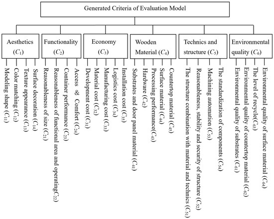 Here, in order to illustrate the use of this model, the criterion (aesthetics C1) is exemplified. Firstly, the fuzzy evaluation matrix of aesthetics C1 for the kitchen cabinet in the case is constructed by Equation (18) on the basis of the summarization of the evaluations showed in Table 3.