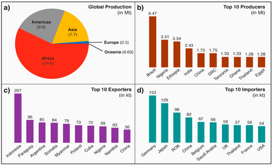 Figure 2a,b). Three African countries (Somalia, Nigeria, and Namibia) are also among the top 10 charcoal exporters in the world (