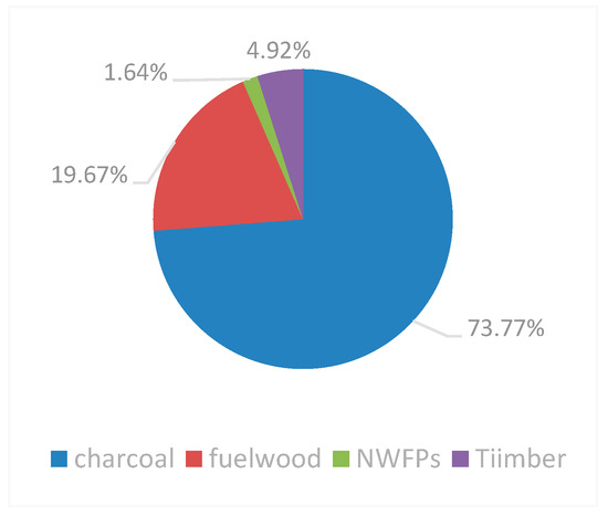 Furthermore, access to forest products is crucial to the income-generating potential of rural communities. Only 73.77% of households had access to charcoal, 19.67% to fuelwood, 1.64% to non-wood/timber forest products, and 4.92% to timber (