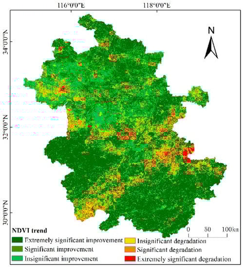 APA StyleHan, W., Chen, D., Li, H., Chang, Z., Chen, J., Ye, L., Liu, S., & Wang, Z. (2022). Spatiotemporal Variation of NDVI in Anhui Province from 2001 to 2019 and Its Response to Climatic Factors. Forests, 13(10), 1643. https://doi.org/10.3390/f13101643