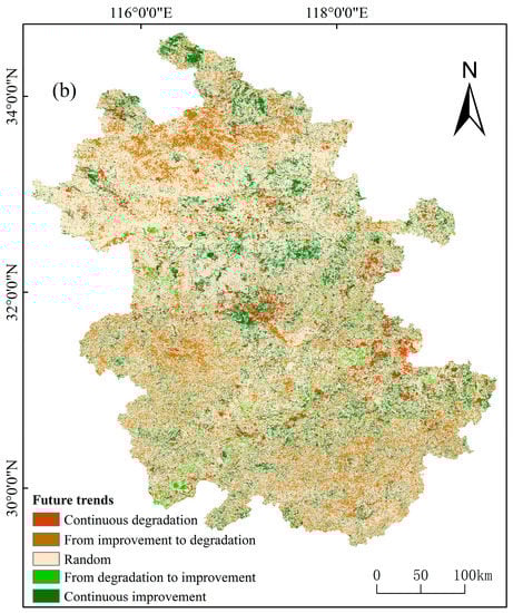 3.4. Future Variation Trend of NDVI in Anhui Province
