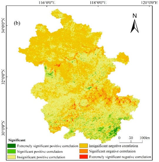 3.5. Response of NDVI in Anhui Province to Climatic Factors