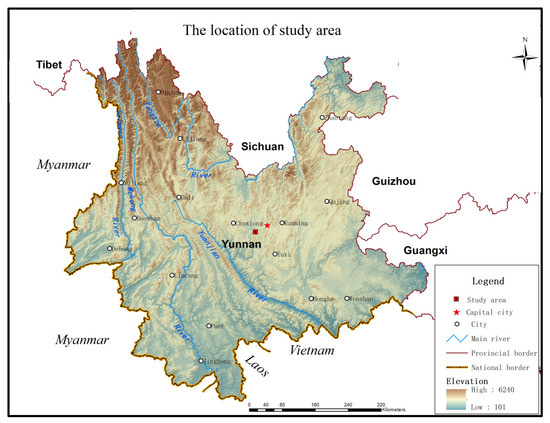 The fires are located in Wuyue Village Bajie Town, Anning City (24°33′28.026″–24°33′25.624″ N, 102°19′37.154″–102°21′43.812″ E), Yunnan Province and occurred on 13 May 2019, (Figure 1). The study area is part of the fire region representing all forest burn severity types in forestry standards mentioned [8]. Over 2500 people fought hard for nearly 72 h to suppress all the wildfires. According to the local forestry bureau on-site survey, this forest fire was a crown fire accompanied by surface fire, and the total woodland fire acreage of approximately 386.7 hm2. The primary vegetation type at the research site consists of coniferous and broad-leaved mixed forest, and the main dominant tree species are Pinus yunnanensis, Pinus armandi, and Cyclobalanopsis glaucoides. Furthermore, adjacent to Kunming, the dense population and frequent human activities give rise to high ignition rates, and the monsoon climate provides a warm, dry winter and moderately hot, humid summer in the study region. The mountainous and rugged topography causes climate change for this region’s elevations, and there is underdeveloped transportation, which causes this location to experience frequent fire occurrences that are difficult to suppress. The local fire prohibited period is from December to the next year before the rainy season, usually at the end of May. Once the rainy season arrives, the vegetation in the burned area will quickly renew and be in succession.