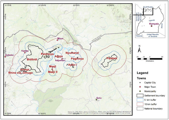 - World Bank; FAO. Rapid Assessment of Natural Resource Degradation in Refugee Impacted Areas in Northern Uganda; World Bank: Washington, DC, USA; FAO: Rome, Italy, 2020; Available online: http://www.fao.org/3/CA7656EN/CA7656EN.pdf (accessed on 15 July 2022).