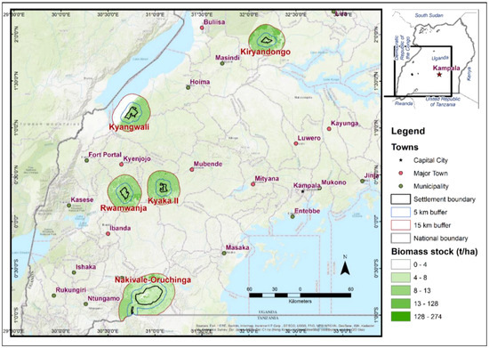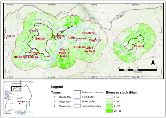Biomass stock within the AoIs in northern Uganda, early 2018. Source: World Bank and FAO, 2020a [29].