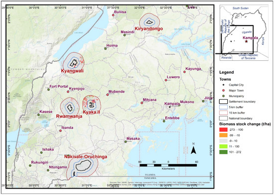 - World Bank; FAO. Assessment of Forest Resource Degradation and Intervention Options in Refugee-Hosting Areas of Western and Southwestern Uganda; World Bank: Washington, DC, USA; FAO: Rome, Italy, 2020; Available online: http://www.fao.org/3/CA7832EN/CA7832EN.pdf (accessed on 15 July 2022).