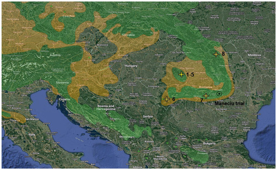 This paper was financed by the Romanian Ministry of Research, Innovation and Digitalization, in the frame of Nucleu Programme (project PN19070302) and also in CresPerfInst (Contract 34PFE/30.12.2021), contracted with the National Institute for Research and Development in Forestry “Marin Drăcea”.