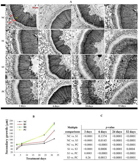 2.3. Anatomical Observation and Analysis of Secondary Growth Changes