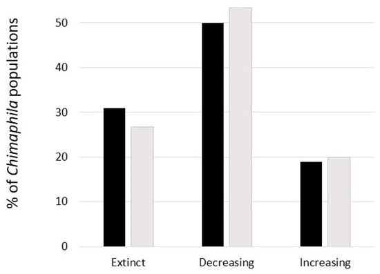 There are also studies with the limitation that they focused on surveys of sites with a known history of human management, but lacking controls and demographic modelling. One study [82] surveyed forest sites with a history as semi-natural grassland, i.e., pasture or meadow, managed until 60–100 ago. The surveys were compared with investigated records from still managed semi-natural grasslands in the same landscape. The objective was to assess which grassland species were still present in the forests, and whether they had declined. Of 67 species for which data allowed analysis, 44 species had declined but were still present at the former grassland sites. Of these, 27 species are categorized as grassland plants (Table 1).