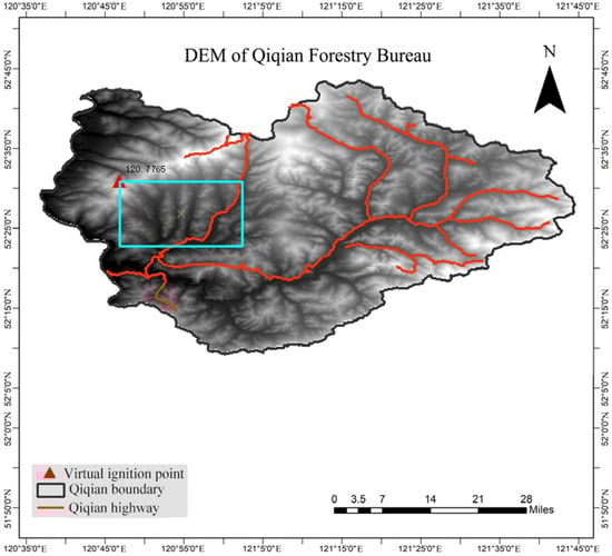 The three undeveloped forestry bureaus of Qiqian, Wuma, and Yonganshan (referred to as the Northern Three Bureaus), under the jurisdiction of the Forestry Administration of the Northern Primeval Forest Region of the Great Xing‘an Range, are the largest area of contiguous primeval forest in China. The Northern Three Bureaus are about 120 km wide from east to west and 140km long from north to south, with a total live wood accumulation of 133.2 million m3 and forest coverage rate of 95.6% []. Forest fire is also the main threat to this forest resource []. In this paper, we study from the perspective of forest fire emergency logistics, take Qiqian Forestry Bureau as the research object, use the improved ant colony algorithm to optimize the fight path, and select the most suitable road entry point to provide reference for forest fire prevention and fight path selection.