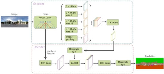 - Chen, L.C.; Zhu, Y.; Papandreou, G.; Schroff, F.; Adam, H. Encoder-Decoder with Atrous Separable Convolution for Semantic image Segmentation. In Proceedings of the European conference on computer vision (ECCV), Munich, Germany, 8–14 September 2018; pp. 801–818. [Google Scholar]