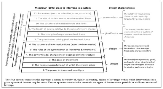 - Meadows, D. Leverage Points: Places to Intervene in a System; The Sustainability Institute: Hartland, WI, USA, 1999. [Google Scholar]