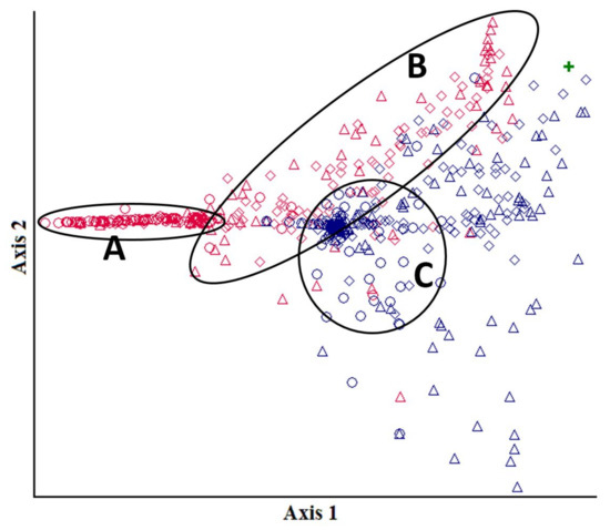 - Hill, M.O. DECORANA—A FORTRAN Program for Detrended Correspondence Analysis and Reciprocal Averaging. Ecology and Systematics; Cornell University: Ithaca, NY, USA, 1979; p. 52. [Google Scholar]