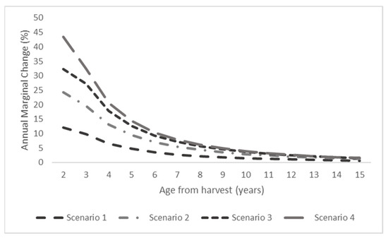 The rate of annual marginal change of option values for the four scenarios showed that the option value declined over time with a higher rate of decline during the early years (Figure 3). Scenario 4, scenario 3 and scenario 2 showed a higher rate of decline in option values up to year 5, followed by a consistent decline until the expiration of option at year 15. Whereas scenario 1 had a consistent rate of decline from the early period up to the expiration year.