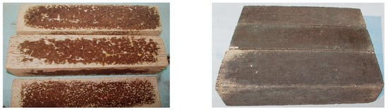 The prepared test specimens were cut into dimensions of 300 mm × 100 mm × 40 mm (Figure 2). They were separately staked in a clean, environment-controlled room with a temperature of 25 ± 2 °C and relative humidity of 62 ± 2% for an eighteen (18)-week observation period. Pictures were taken at the end of each of the seven days using a Samsung Galaxy S9+, camera version 10.0.03.31.