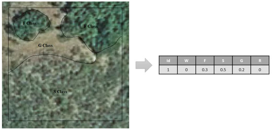Procedure for obtaining reference fractions from the sample of the 30 × 30 m plots for validation. By assigning an identifier to each entity, the fractions of each type of existing habitat were visually identified.