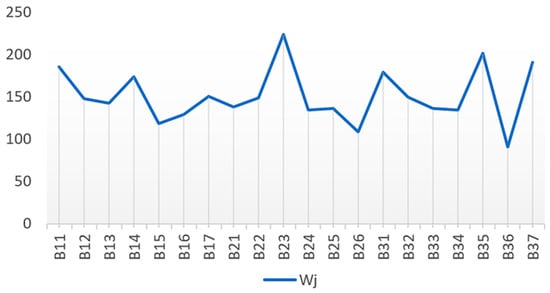According to the hierarchy of Kano model user needs, three categories such as functional design are listed item by item, and more than 20 subcategory design requirements such as storage space are added. There is a certain relationship among the subcategories in each category, but they are independent of other design requirements, as shown in Table 6. In order to make the design point of wood desk of users more reasonable in terms of planning, combining the QFD method and user demand hierarchy table, the specific implementation requirements of various design levels were deduced. Next, a relationship matrix was established between the user demand level and the design requirement level. The correlations were classified as strong, medium, and weak. The software package QFDv3.3 was used for the correlation analysis, and the three correlation levels were represented by symbols ●, █, and ▲. The Wij of design requirements was output according to the user demand comprehensive score, user demand matrix, and other data, as shown in Figure 7. Design practice and design planning for wood desks for open-plan offices can be conducted in accordance with the importance values of design requirements.