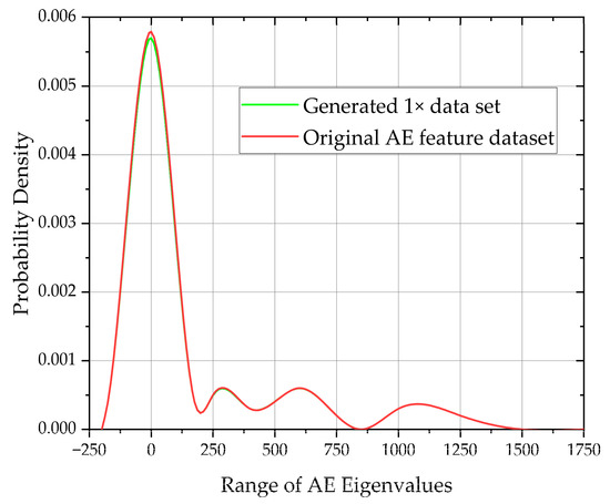 To further evaluate the quality of the data generated by the CTWGAN-GP-L algorithm model, we first plotted the hybrid kernel density estimates for the numerical columns of the original AE feature parameter dataset and the generated 1-fold dataset, which are shown in Figure 10.
