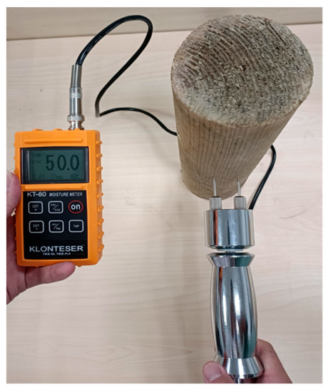 - Fredriksson, M.; Wadsö, L.; Johansson, P. Small resistive wood moisture sensors: A method for moisture content determination in wood structures. Eur. J. Wood Wood Prod. 2013, 71, 515–524. [Google Scholar] [CrossRef]