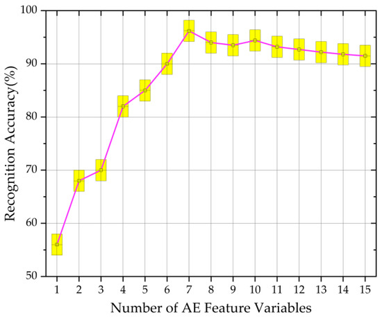 The feature screening results of the RF algorithm and the XGBoost algorithm are next presented in Table 8. From Table 8, it can be seen that when using the 11-dimensional features of the XGBoost algorithm for LightGBM recognition, the accuracy is only 85.5%; while using the features screened by RF for recognition, the accuracy is increased to 96.2%. Compared with the results of XGBoost, the RF algorithm preferred features with lower dimensionality parameters and higher recognition accuracy, proving its efficiency in AE signal feature selection in WASN.