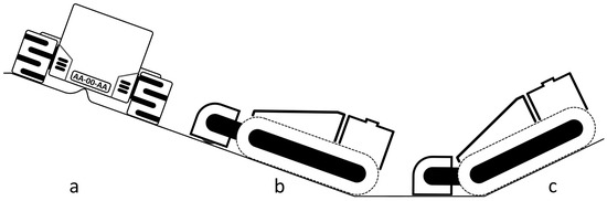 - Kitano, M.; Kuma, M. An analysis of horizontal plane motion of tracked vehicles. J. Terramechanics 1977, 14, 211–225. Available online: https://www.sciencedirect.com/science/article/pii/0022489877900350 (accessed on 15 September 2022). [CrossRef]