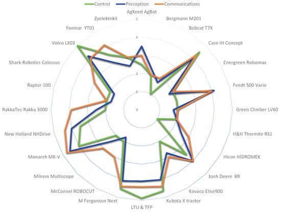 - Operator-assisted autonomy: Operator-assisted autonomy allows operators to focus on the operation as their MIM drives itself. While MIMs are still manned by an operator, guidance technologies help maintain row-to-row MIM accuracy in the field in order to reduce overlaps and skips. This category of automation uses both vehicle and environmental data to develop an information hub [63]. An MIM equipped with ISOBUS Class 3 functionality falls into this category as this technology allows, among others, the control of tractor ground speed and power take-off (PTO) functions. Satellite imagery and soil sampling maps help in the coordination and optimization of in-field path plans, which fall in the category of operator-assisted autonomy. These technologies help save energy, decrease labor costs and reduce operator fatigue while also maximizing efficiency.