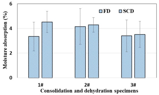 The MA values are determined using the weight of specimens before and after conditioning according to the GB/T 1931–2009 criterions, which is calculated via Equation (4):