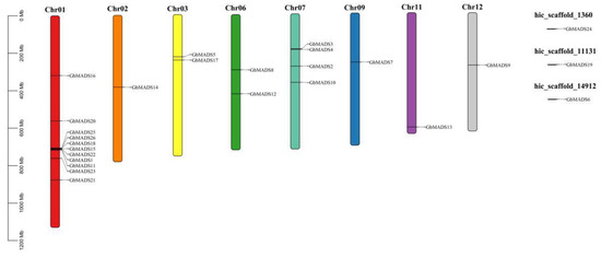 3.2. Chromosome Mapping and Collinearity Analysis of GbMADS