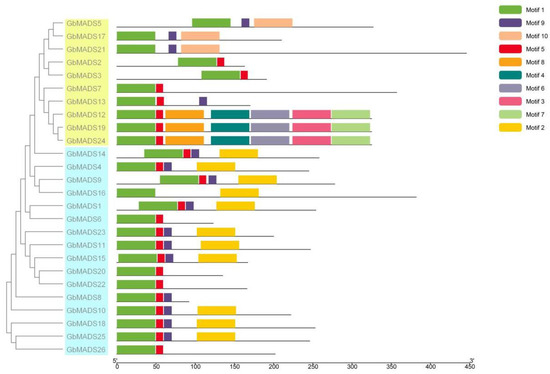 3.4. Phylogenetic Analysis of the GbMADS Gene Family