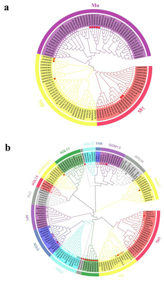 - Becker, A.; Theissen, G. The major clades of MADS-box genes and their role in the development and evolution of flowering plants. Mol. Phylogenet. Evol. 2003, 29, 464–489. [Google Scholar] [CrossRef]