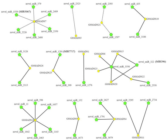 3.5. Prediction of the miRNA Target Sites of the GbMADS Gene Family