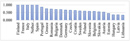 Nonetheless, this dimension of resource efficiency represents the dimension of appreciation, describing best the readiness of each country to move towards a forest bioeconomy. The subdimensions of this pillar reflect the effort each country has made to ensure the reduction of waste, intensive economic development, or resilient supply chains, especially in an actual environment characterized by a high risk of disruptions. The most relevant evidence is related to the effects of the recent COVID-19 pandemic, which caused significant changes to the market’s structure, consumers’ behavior, and the design of operational processes along entities operating in the forestry industry.