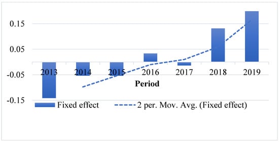 The analysis is conducted using panel data sets, checking for fixed or random effects as well, if the relevant statistical tests, such as the Hausman test, the Breusch–Pagan test, or the F tests, confirmed which effects were statistically significant. The models looked only for period fixed effects to reveal trends in the relationship between the potential for value creation and the progress towards a green economy. However, we did not proceed to country fixed effects, as through the DEA we already controlled for countries’ economic model specifics.